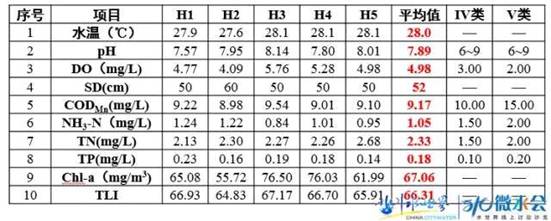濱湖水體為地表水劣V類,其主要超標(biāo)污染物為總氮和總磷,由綜合營養(yǎng)狀況指數(shù)(TLI)可看出,水體處于中度富營養(yǎng)狀態(tài)。